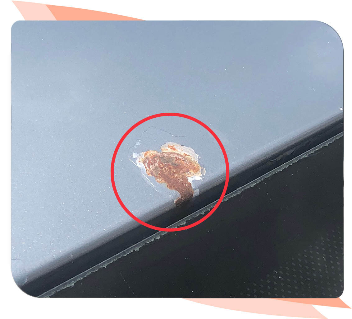 Most often, damage occurs when a pebble flies into the edge of the roof of the car. A pebble pierces the vehicle's paint and varnish down to the metal. This is where rust forms and spreads over the years.